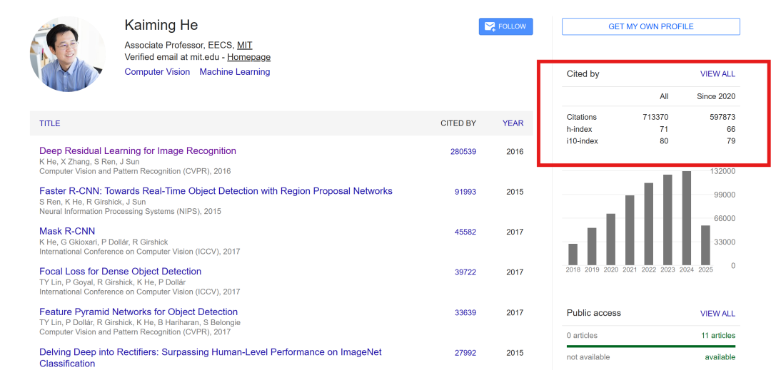 目前其谷歌学术总引用量已经超过71万次,是当之无愧的学术大佬。