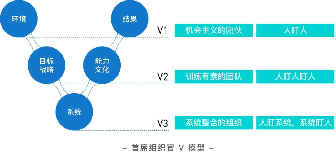 随着行业竞争的加剧,企业发展还得上一个大台阶,必须是系统整合的组织,以系统的方式承载独特的能力和文化,承载难以短期复制的战略性的竞争力。如果还延续之前的人盯人的模式,中间盯的人越多,信息的传递偏差就会越来越大,越盯越乱,人工成本增加,反而效果不佳。所以,这时候一般就要升级为人盯系统,系统盯人。