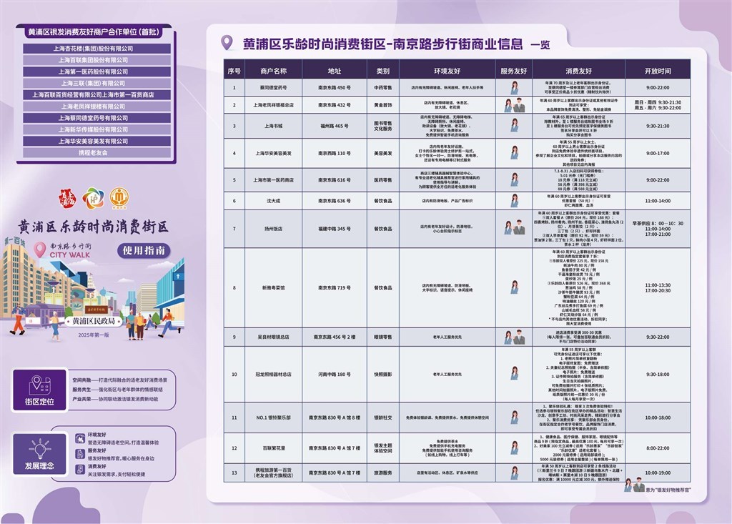 在上海市民政局和市商务委的指导下,黄浦区民政局、区商务委牵头,会同上海养老产业促进中心、百联股份、新世界集团以及属地外滩街道和南京东路街道等合作伙伴共建乐龄时尚消费街区。围绕“空间共融、服务共生、产业共融”三大定位,营造代际融合的适老友好消费场景,强化街区与老年群体的情感联结,协同联动更多老龄产业,进一步激活银发消费发展新动能。