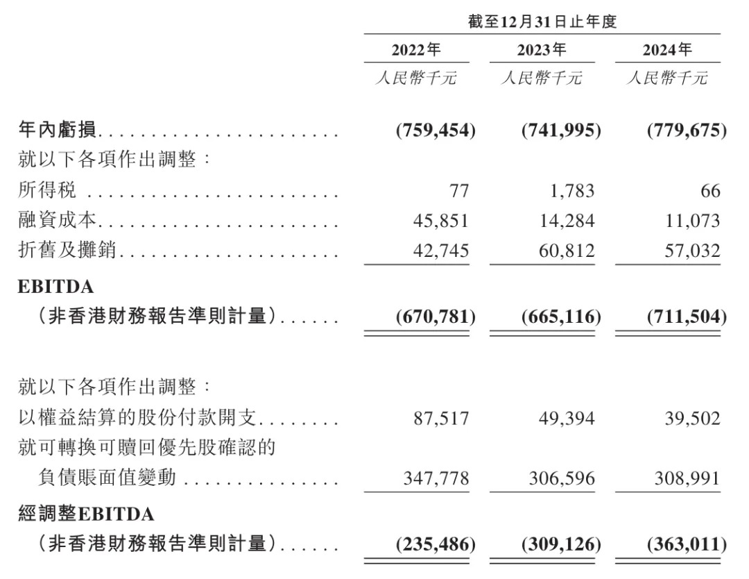 镁伽科技2022年、2023年、2024年EBITDA分别为-6.7亿、-6.65亿、-7.11亿元;经调整EBITDA分别为-2.36亿、-3.09亿、-3.63亿。
