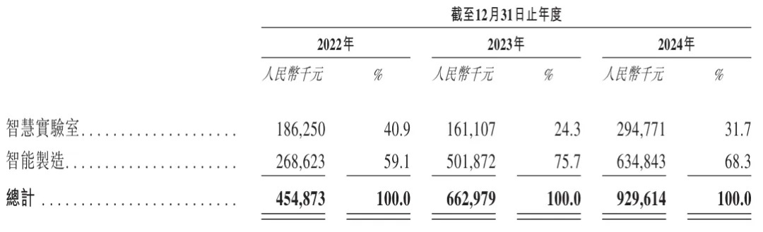 镁伽科技2024年来自智慧实验室的收入为2.95亿元,占比为31.7%;来自智能制造的收入为6.35亿元,占比为68.3%。