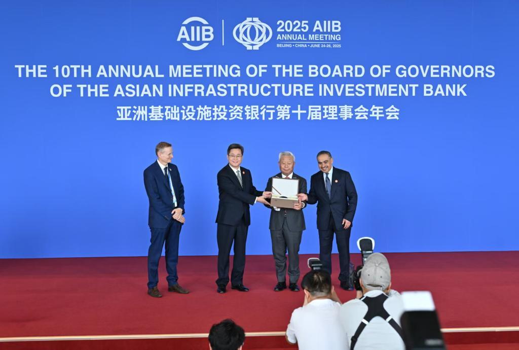 6月26日,在亚投行第十届理事会年会上,亚投行理事会年会东道国由中国交接给卡塔尔。新华社记者 李鑫摄