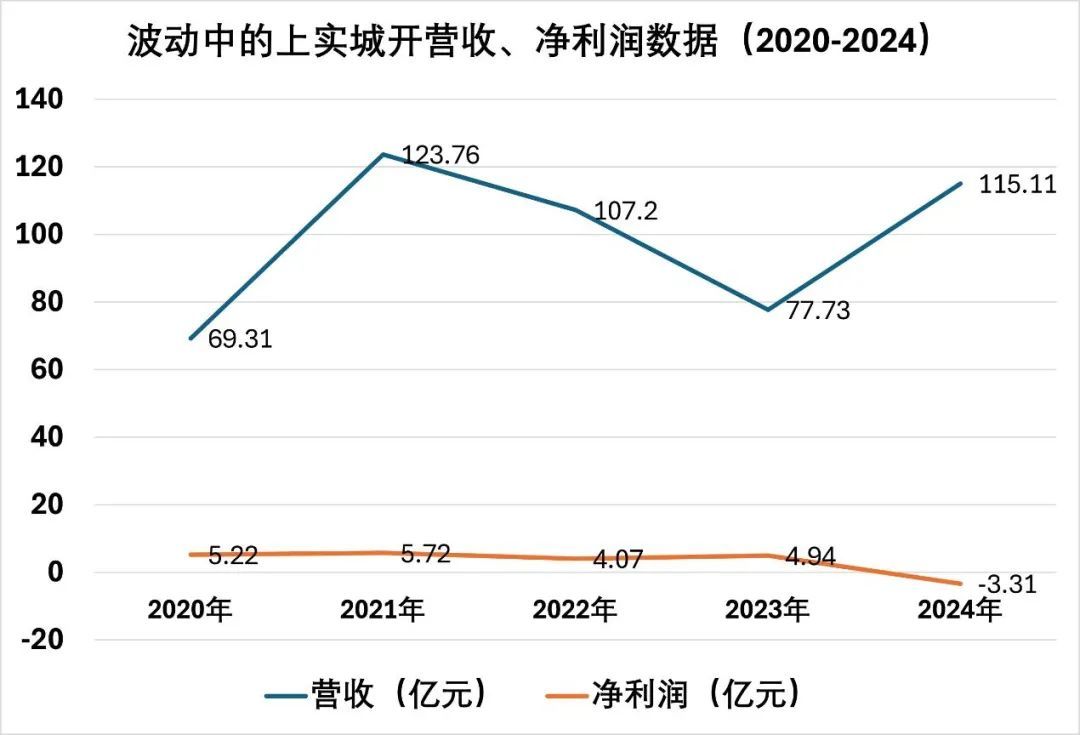 自2015年以来,上实城开的净利润率维持稳定上升态势,并不断吸纳新项目;然而到了2020年,该企业利润数据首次下滑,并于后续几年一直呈现波动状态。2024年报中,上实城开净亏损达到了3.31亿元。