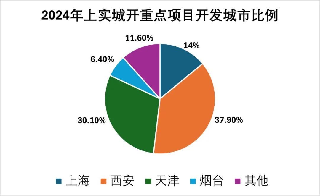 “销售额下降主要是由于一二线城市销售比例较少所致。”据观点新媒体了解,2024年,上实城开重点项目主要聚集在上海、西安、天津及烟台,包括天津上实仰山、西安自然界、上海上实望海、西安上实启元及烟台上实云麓等,分别占年度商品房合约销售总金额约30.1%、27.7%、14.0%、10.2%和6.4%。
