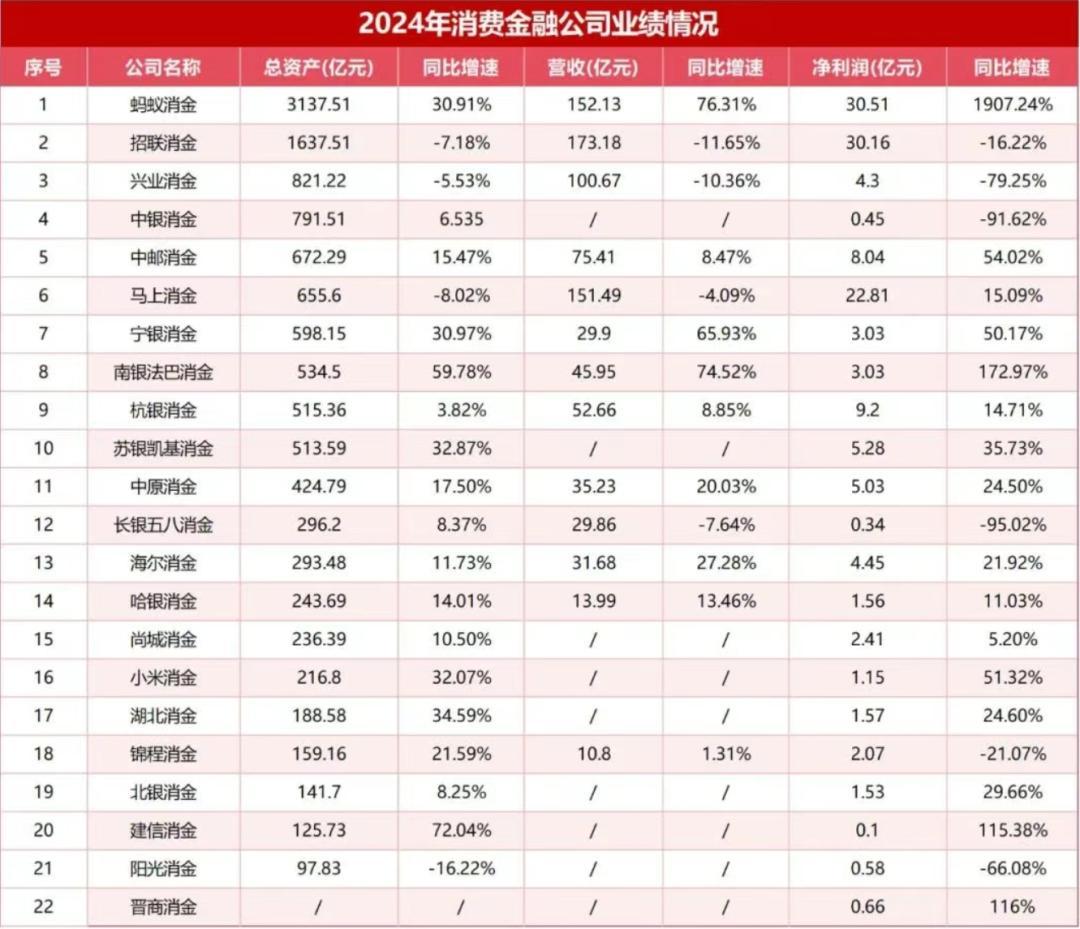 但是,与2023年相比,招联金融、兴业消金去年规模均出现了下滑,前者同比下降7.18%,后者同比下降5.53%。