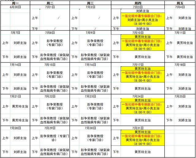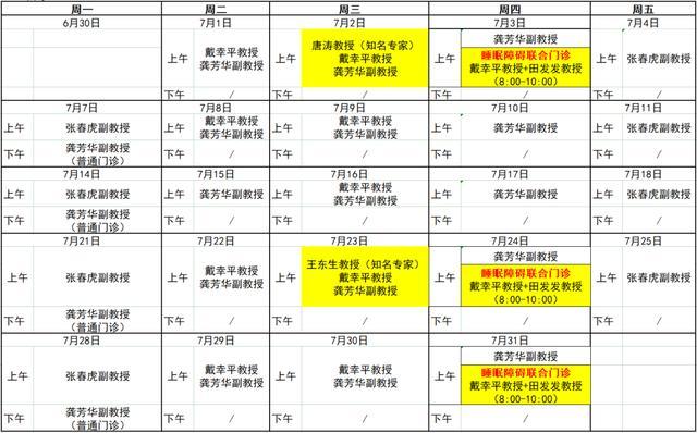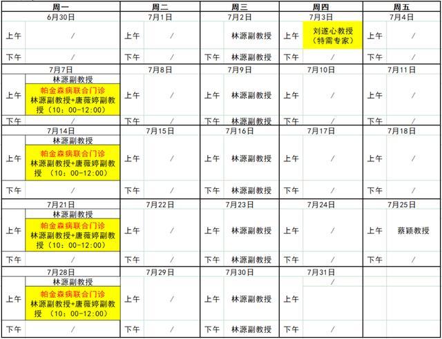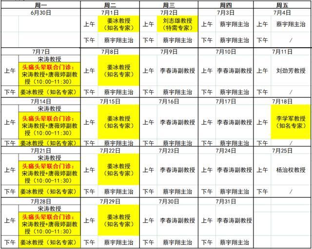 ▶神经内科坐诊安排