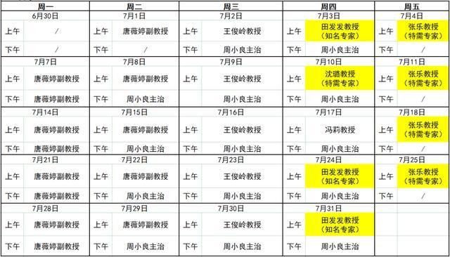 ▶联合门诊坐诊安排