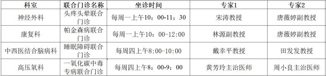▶中西医结合脑病科坐诊安排