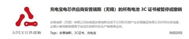 根据网上汇总,罗马仕、安克、绿联、小米和倍思等移动电源品牌,均有采购一家名为「安普瑞斯」供应商的电芯。安普瑞斯的电芯,在近期又被暂停了所有电池的3C认证,那么矛头都指向这供应商的出品。