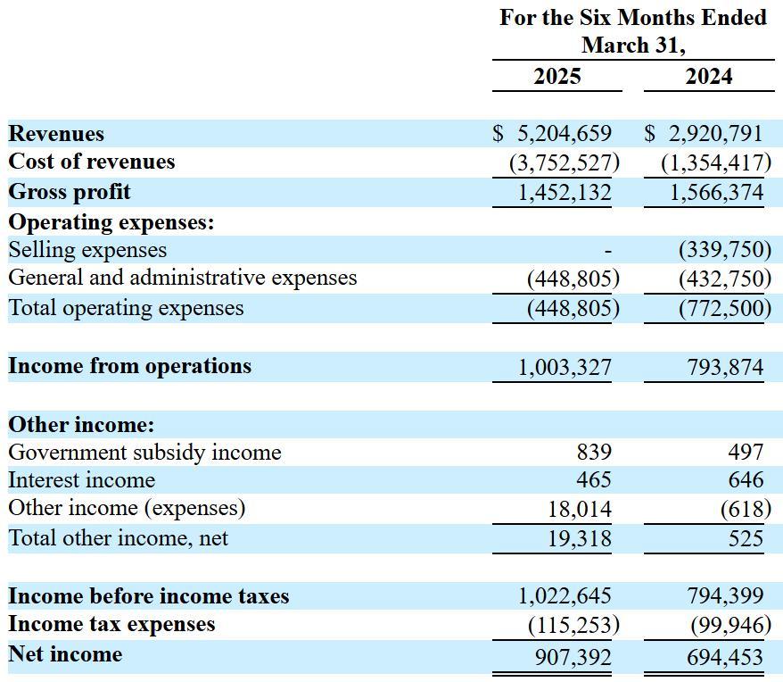 截至2025年3月31日的六个月内,集团的业绩依旧保持增长态势。报告期内,营收同比增长了78%来到520万美元,净利润约为91万美元,同比增长了31%。