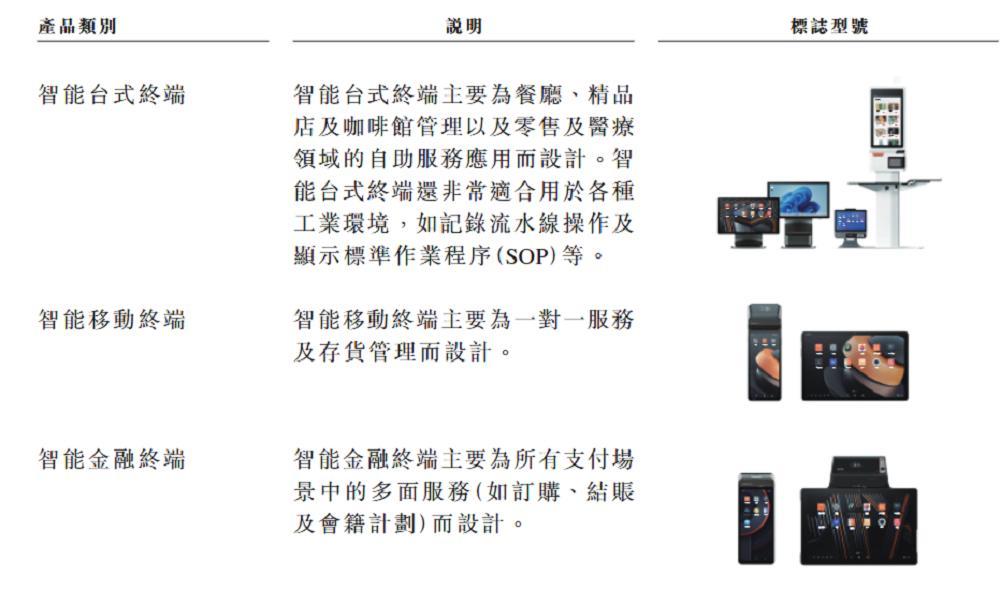 商米科技的产品类别包括智能台式终端、智能移动终端和智能金融终端,如商超、餐饮店铺中常见的自助结账系统、智能秤(自动识别商品)、移动支付扫码设备等。