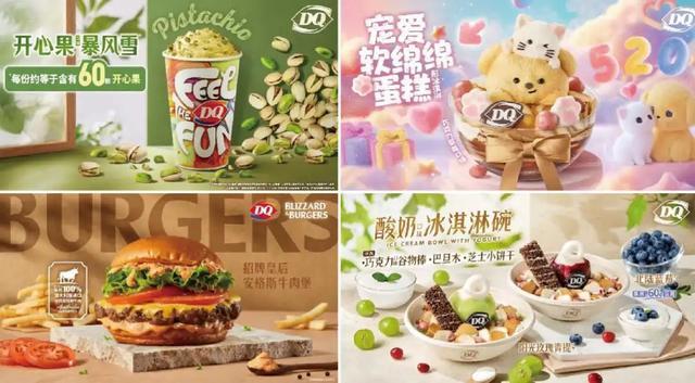 2017年,DQ推出轻食产品;2018年,试水茶饮业态;2019年,推出了桶装冰淇淋等硬冰零售品,正式布局电商渠道;2024年5月,加码手工定制蛋糕细分品类,进一步贴近Z世代;2024年7月,中国首家DQ汉堡店在上海正式开业,正式迈入快餐领域。