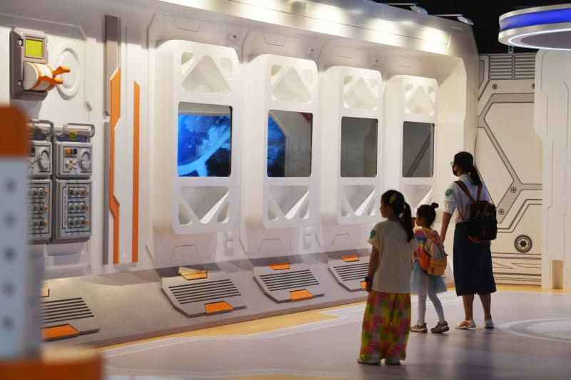 本次展览由科技馆与天枢寰宇(北京)航天科技有限公司主办,以“中国天宫太空站”为蓝本,呈现公元2350年的未来宇宙场景,构想中国航天在世界格局中的发展可能。观众将化身“天选之子”,登上中国太空站“无畏号”,参与拯救地外文明的星际行动。