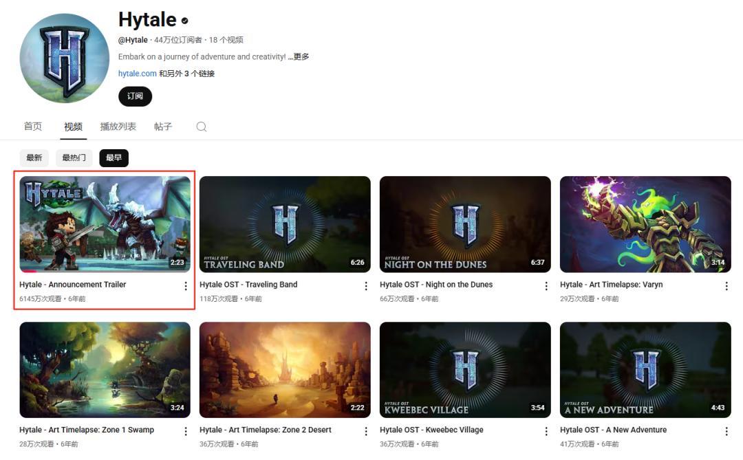 2018年12月,《Hytale》的首支预告片公布,并在一个月内获得超过3100万的播放量,目前视频总播放量已经达到了6100万。