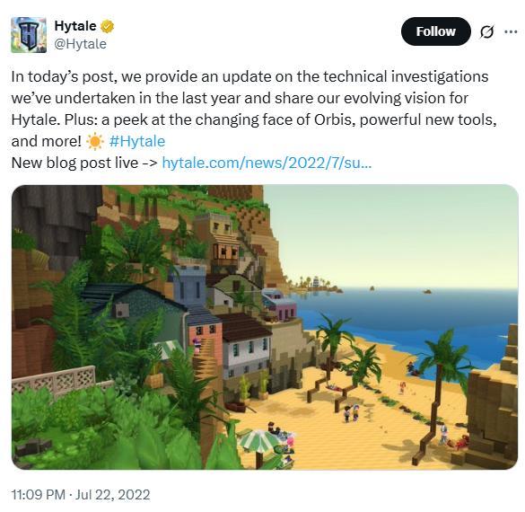 当时,游戏计划在2021年上线,但随着团队愿景的发展以及标准的不断提高,游戏制作规模不断扩大,项目也因此多次延期。2022年7月,团队宣布由于编码语言的限制,他们决定重新开发游戏引擎,为《Hytale》的多平台发布以及未来发展奠定更坚实的基础。