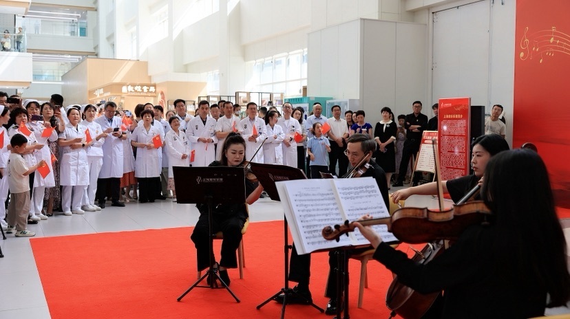 6月26日清晨,上海市第一人民医院酒泉医院大厅里,弦乐四重奏悠扬响起。《弹起我心爱的土琵琶》《在希望的田野上》等乐曲,尤其是加演的《我和我的祖国》,引发医护人员和患者的大合唱。自2023年成为国家区域医疗中心以来,上海持续向酒泉输送医疗资源。上海市第一人民医院酒泉医院执行院长高臻表示:“这是医院首次举办现场音乐会,音乐为医患带来了心灵抚慰。”