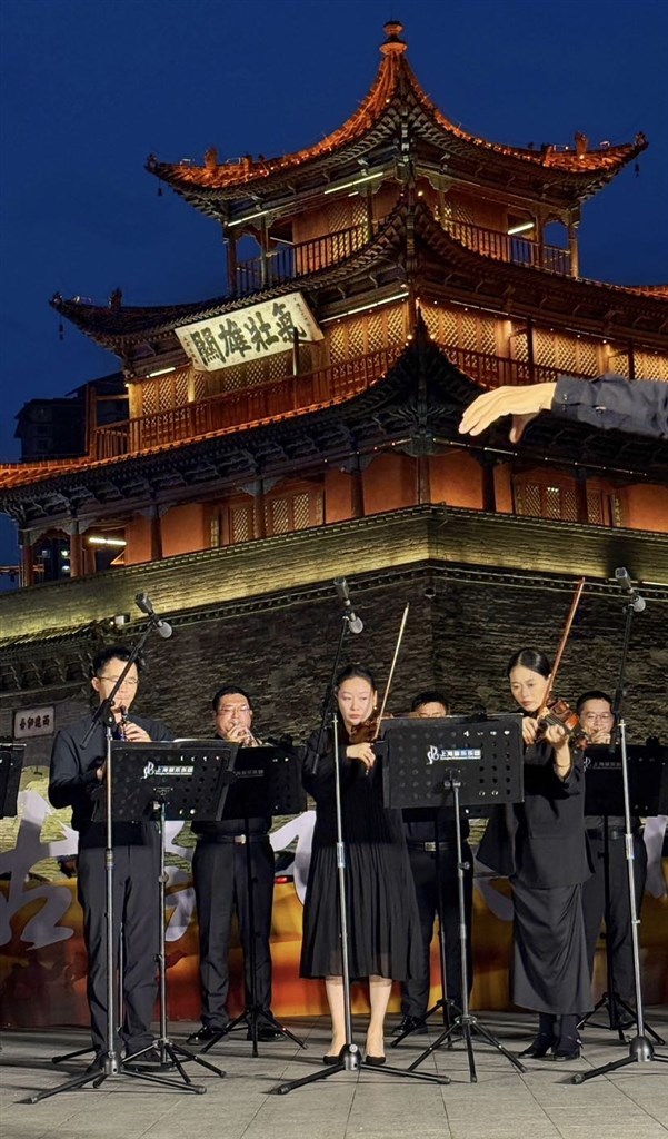 6月25日晚,刚抵达酒泉的音乐家们来到始建于东晋的酒泉鼓楼前演出。《上海爱乐号角》《云宫迅音》《黄土高坡》等曲目轮番上演,龚天鹏亲自改编指挥,热情的当地观众跟着旋律合唱,演出结束后仍意犹未尽。
