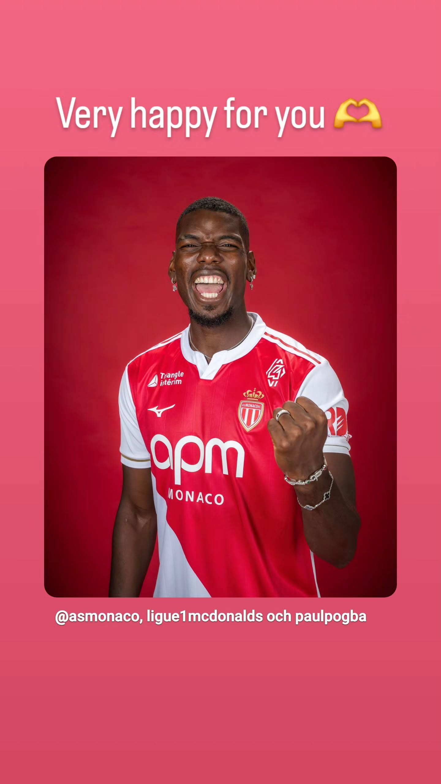 伊布分享了博格巴身穿摩纳哥球衣的照片并写道:“为你感到非常高兴。”