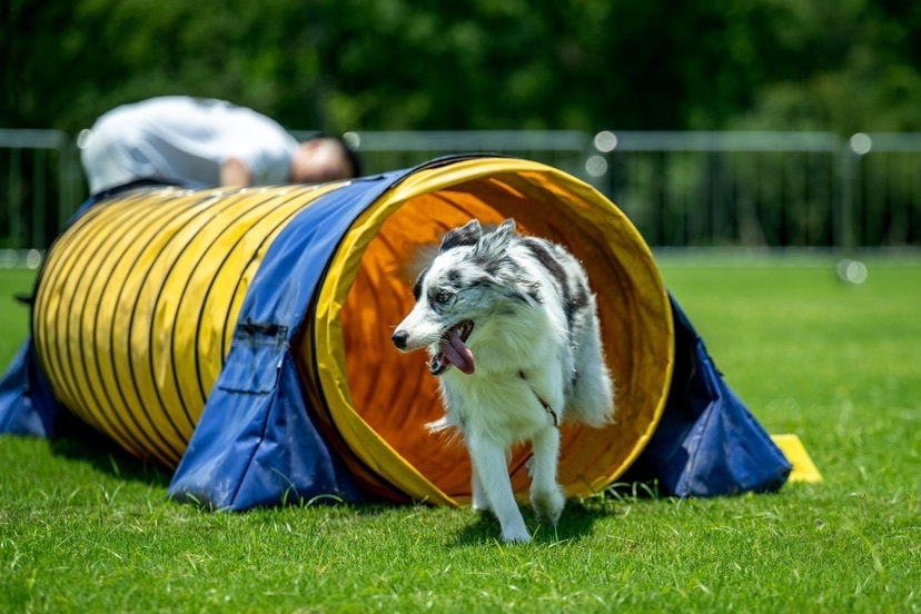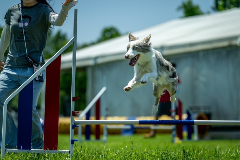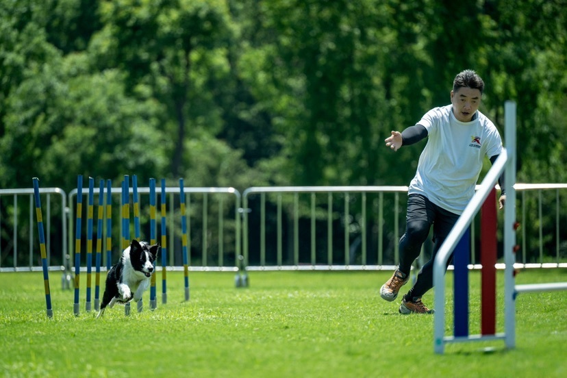 作为活动焦点的“犬敏捷跳跃赛”打破品种与体型限制,面向6月龄以上健康犬只开设“娱乐组”与“挑战组”双赛道,践行“每只小狗都是敏捷之星”的办赛宗旨。赛场上,参赛犬只穿梭障碍栏架、飞跃高低跳台的矫健身影,与主人牵引引导的默契配合,在绿茵草坪上勾勒出“人与动物和谐共生”的生动画面。