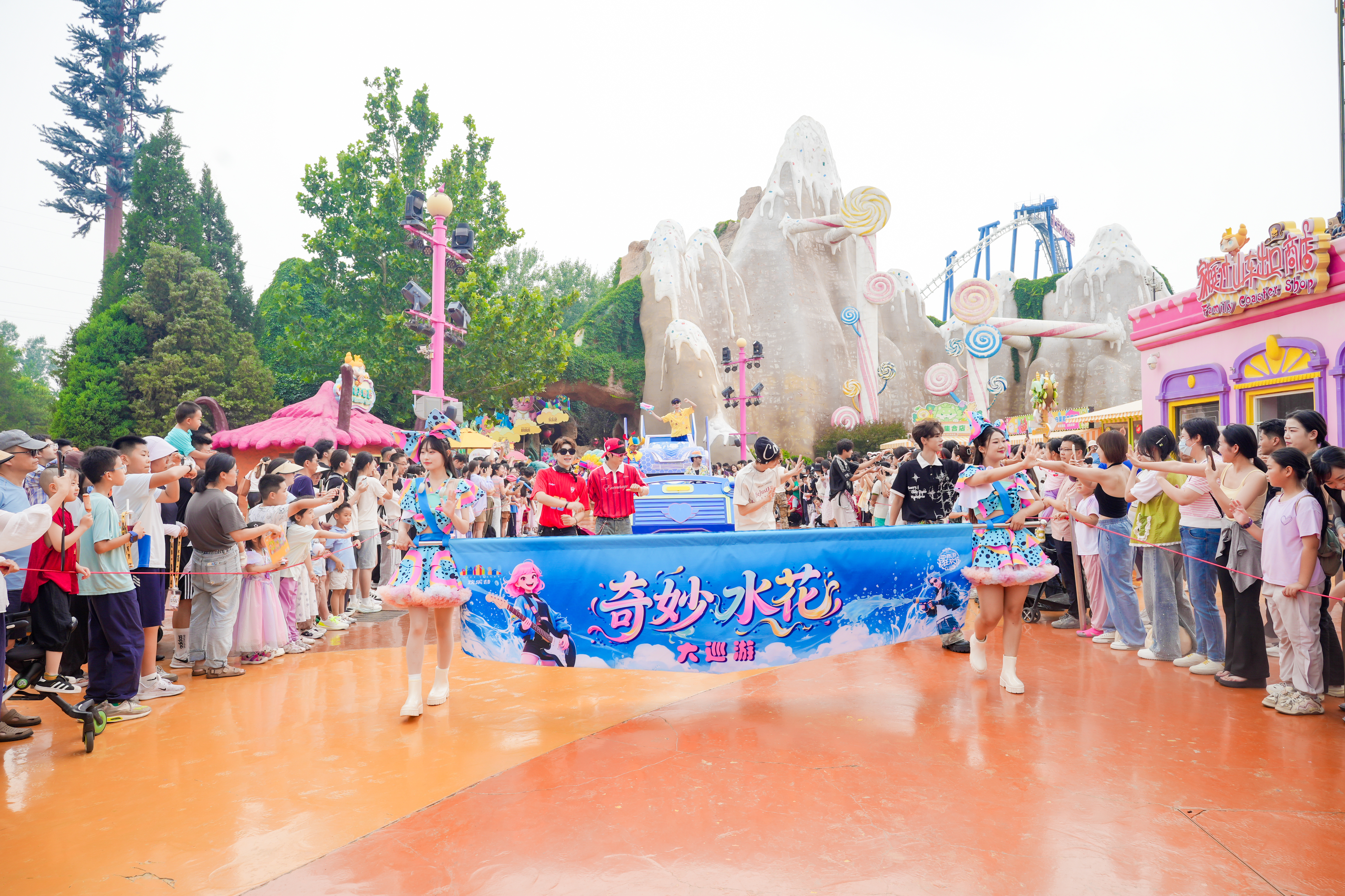 在夏浪狂欢节开幕式上,北京欢乐谷打造的元气男团CRUSH、女团Cherry Bomb正式出道,青春活力、可盐可甜的唱跳团体颜值在线,以绝佳实力打造S级舞台水准,展现极致舞蹈张力;夏浪NPC天团心动营业,合影、互动、惊喜玩法开启1V1专属剧情;此外Kpop Family高燃炸场,带来强烈视觉冲击力,掀起Z世代的狂欢热浪,将偶像文化转化为沉浸式参与体验;而“星闪派对”音乐小舞台,打破传统观赏模式的界限,为素人提供开放麦演唱与随机舞蹈挑战的平台,让游客从旁观者转变为参与者,展现个性化魅力,强化主体的真实表达。