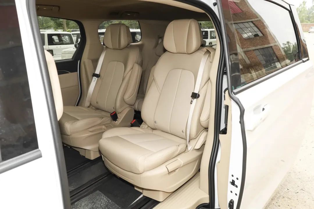 配置方面,相比上一代车型,新车增加了智能防夹右侧电动滑移门、外后视镜电动折叠/加热、双层声学玻璃、后轮罩毛毡吸音材料等等,座椅依然是2+2+3的七座布局,第二排配备了豪华航空座椅,配备独创防晕阻尼器,减少晕车发生,而且后排增设实体控制空调面板。