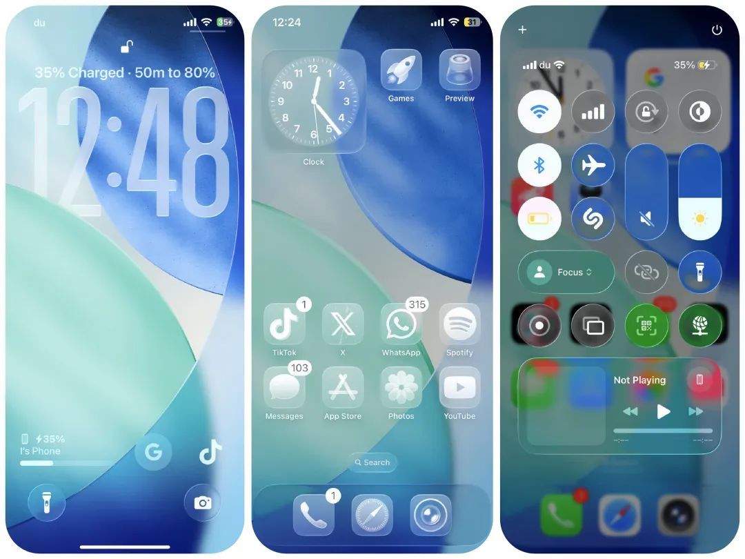 液态玻璃的光影折射接近早期iOS的拟物风格,但2013年后用户已习惯扁平化设计,新风格被调侃为“复古倒退”,小组件的玻璃质感被指“像贴了水晶手机壳”,与主流极简趋势相悖。