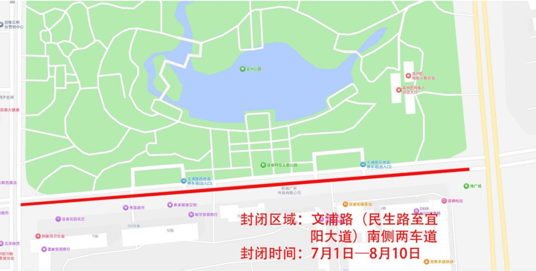第一阶段施工计划:封闭文浦路(民生路至宜阳大道)南侧两车道,封闭时间:2025年7月1日至8月10日。