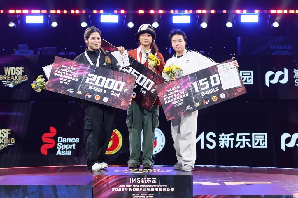 女子半决赛中,郭朴战胜国内赛场的老对手刘清漪晋级决赛。决赛中,郭朴凭借动作完成度和对音乐节奏的高度契合,以压倒性优势击败日本选手津波古里科,连续两天在亚洲霹雳舞顶级赛事中折桂,展现出强劲的上升势头。刘清漪则在季军争夺战中战胜半井彩弥,收获一枚铜牌。