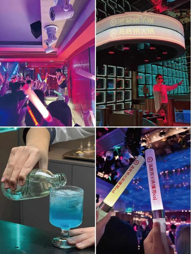 除了DJ打碟、劲歌热舞之外,还有调酒师现场花式调酒、舞者台上与顾客热情互动。在这里,火锅成了陪衬,热烈的氛围才是主角。