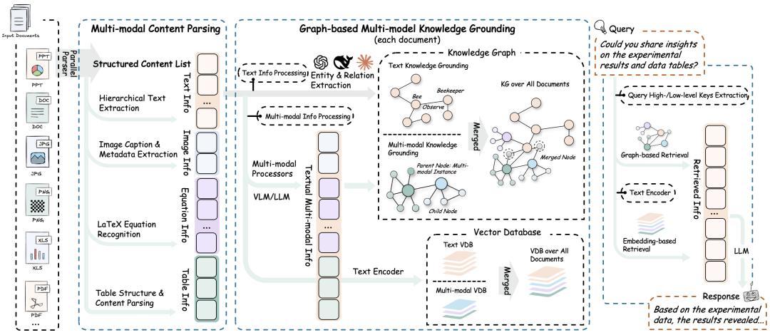 该系统提供完整的端到端多模态文档处理解决方案,能够统一处理文本、图像、表格、数学公式等多种异构内容,实现从文档解析、知识图谱构建到智能问答的全流程自动化,为下一代AI应用提供了可靠的技术基础。