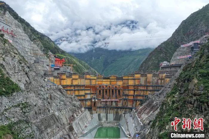 6月30日,我国在建海拔最高双曲拱坝电站、金沙江上游川藏段装机规模最大水电站——叶巴滩水电站引水发电系统工程主厂房6台机组完成发电机层混凝土浇筑,全面进入机电安装阶段,为实现2025年底首批机组投产发电奠定了基础。