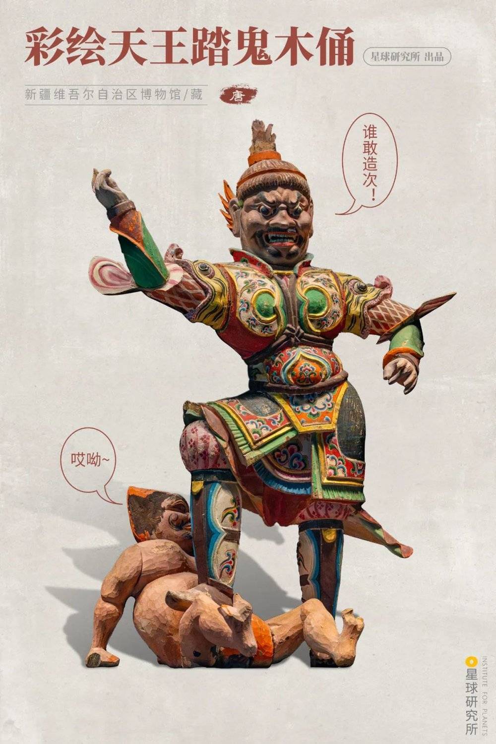 (张雄墓出土的彩绘天王踏鬼木俑,摄影师@笑谈间气吐霓虹,制图@淼淼/星球研究所)