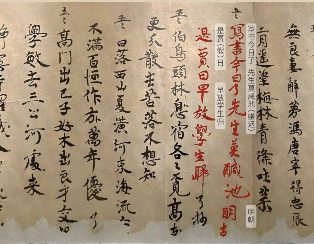 (这是一位唐西州小学生的家庭作业(局部),全文足足写了5米长,里面还写了两首抱怨学业的打油诗,摄影师@朱智勇,标注@淼淼/星球研究所)