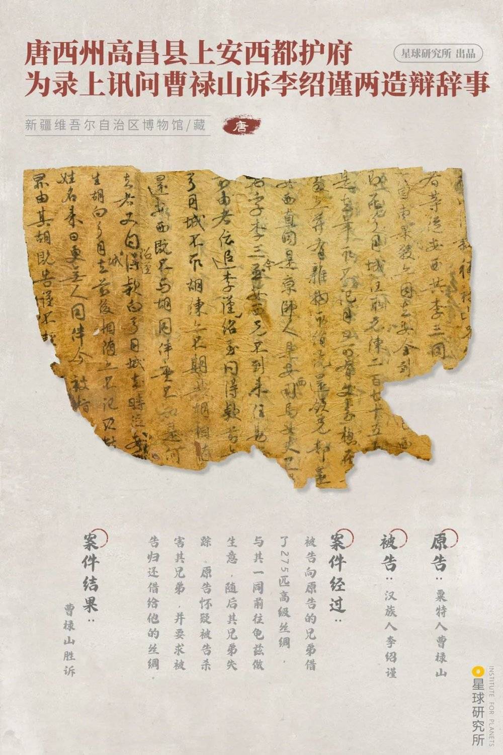 (文书里记录了一位粟特人状告汉族人,要求其归还欠款的案件,摄影师@朱智勇,制图@淼淼/星球研究所)