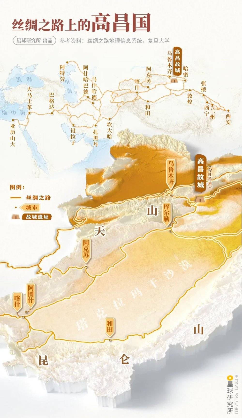 (丝绸之路上的高昌国,制图@吴昕恬/星球研究所)