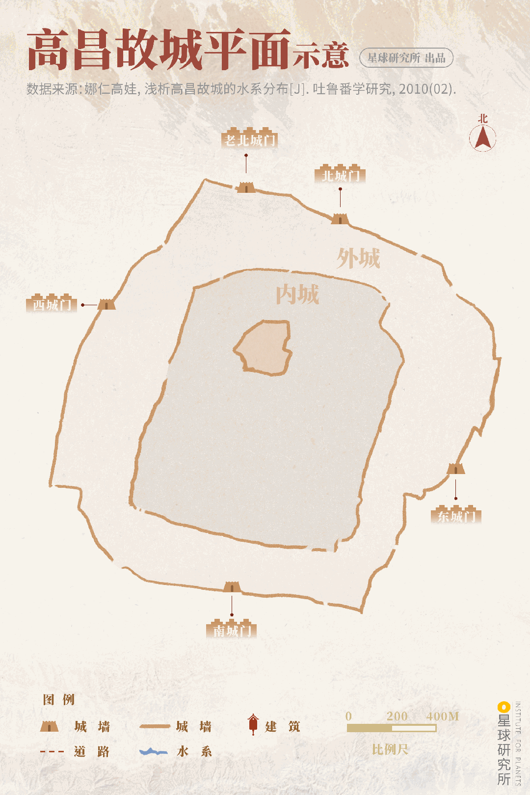 (高昌故城面积达200万㎡,约故宫面积的3倍,制图@淼淼/星球研究所)