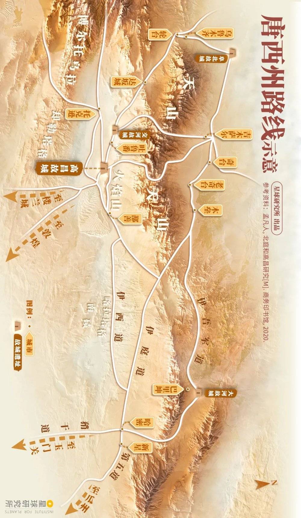 (请横屏观看,唐西州路线图,制图@吴昕恬/星球研究所)