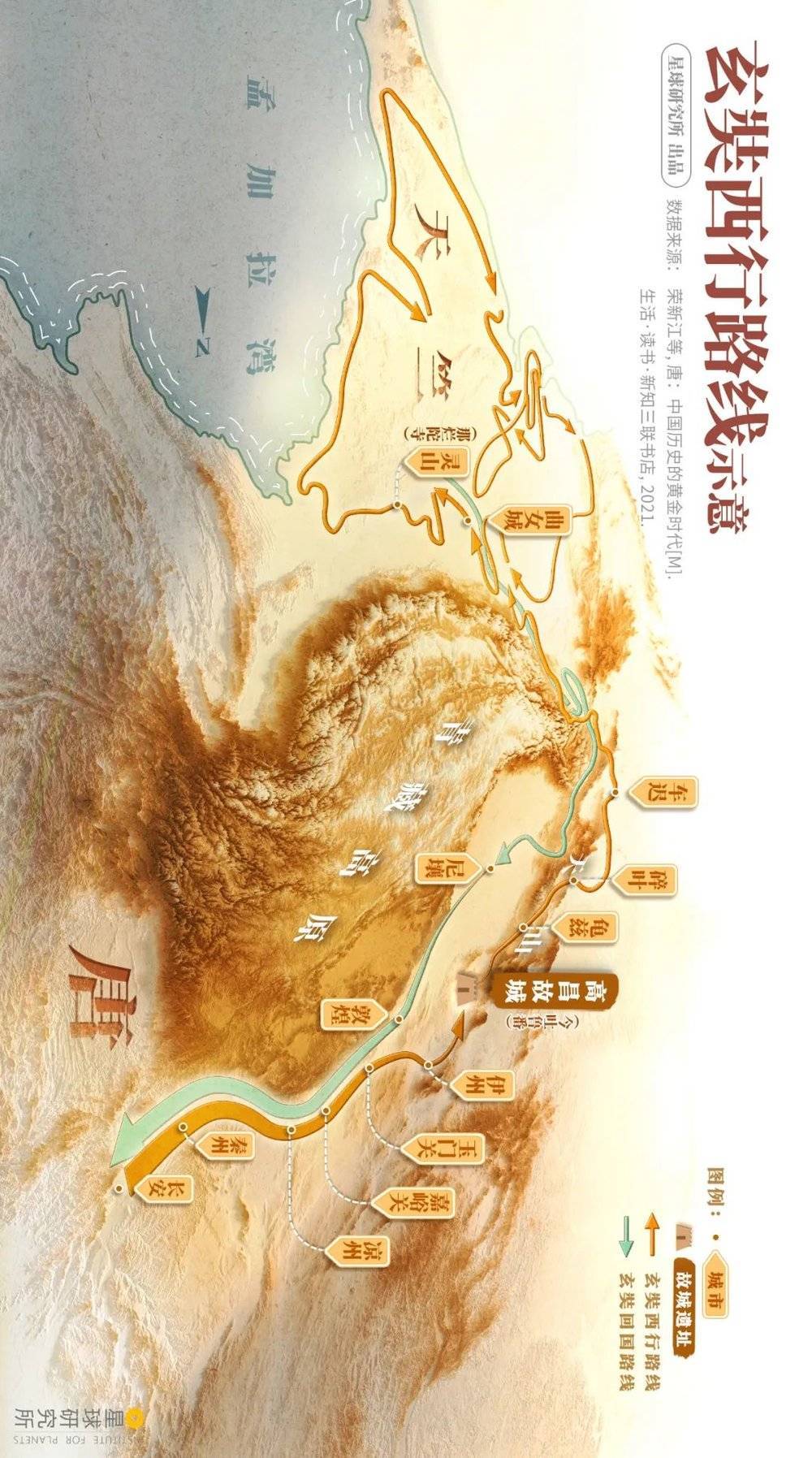 (请横屏观看,玄奘西行路线图,制图@吴昕恬/星球研究所)