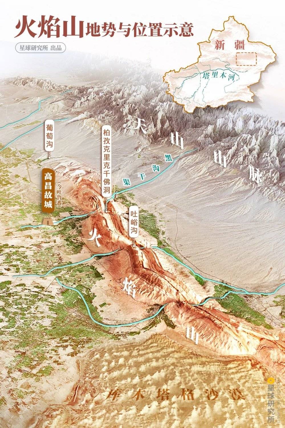 (火焰山地势与位置,制图@吴昕恬/星球研究所)