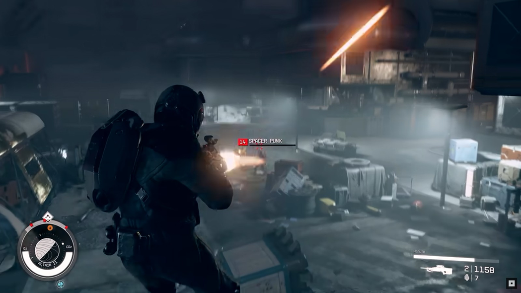 同样地,开发者们主导的深度预览显示,氧气为游戏中的行星际探险增添了一个额外维度的挑战。事实上,游戏中的抬头显示中包括一个持续的可追踪的氧气浓度读数,然而这项机制在实际操作中更像一个改头换面的体力显示条,以对抗性为主导的游戏当中的一种经典主要配置。