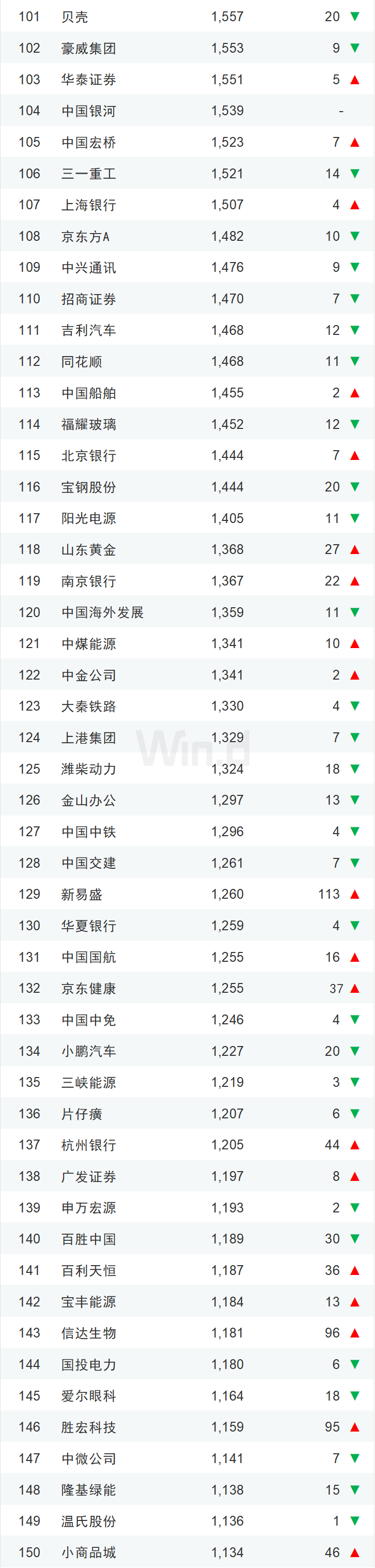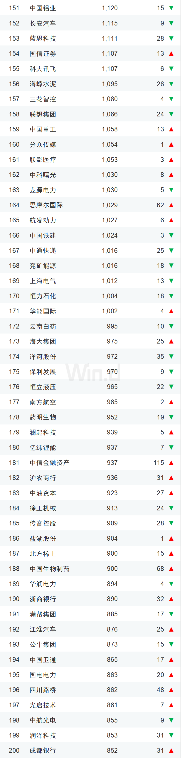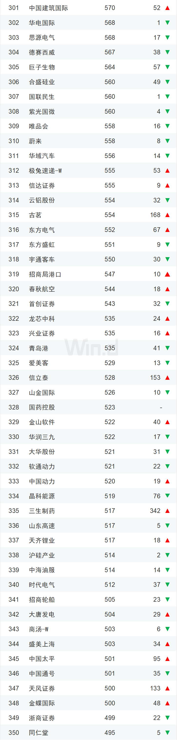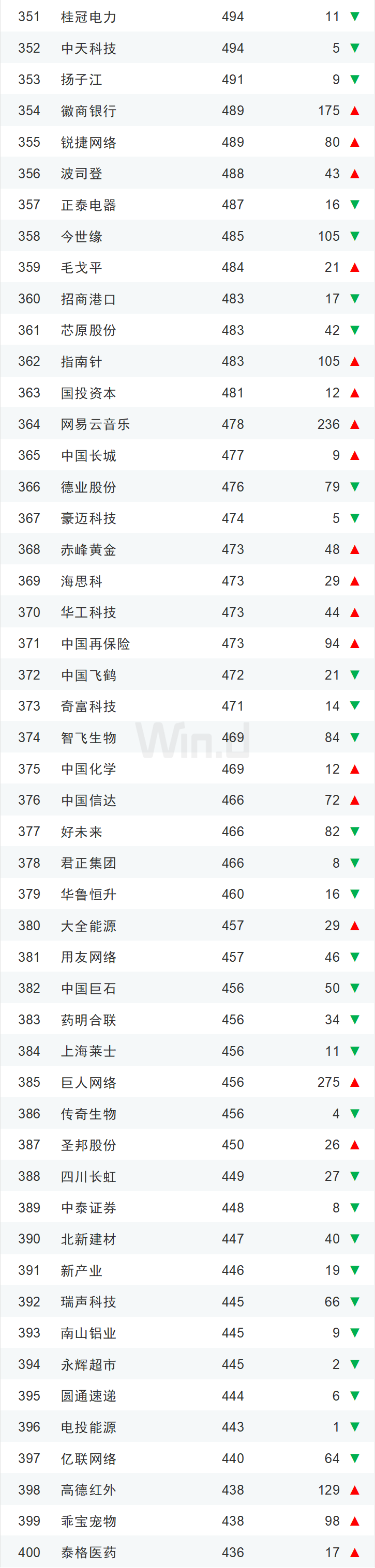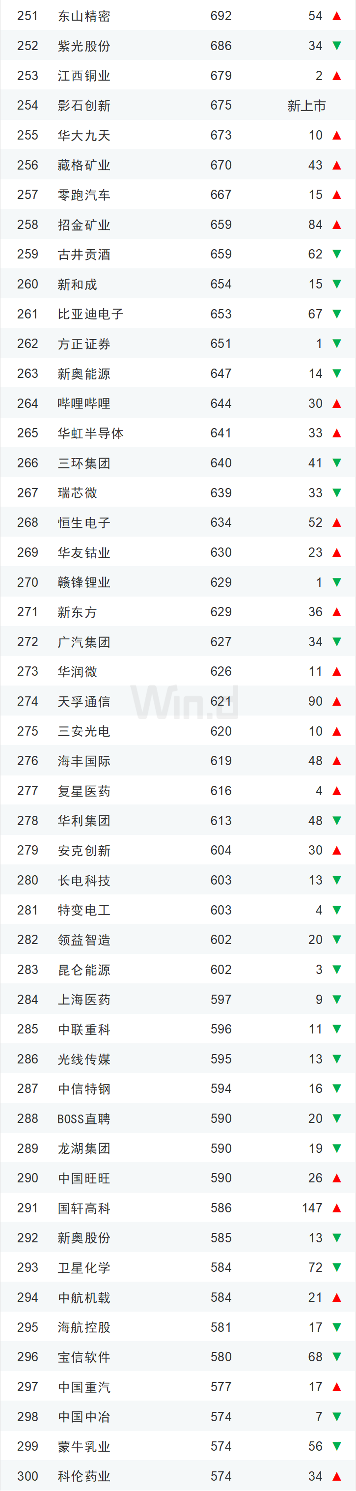 11中国市值500强全名单