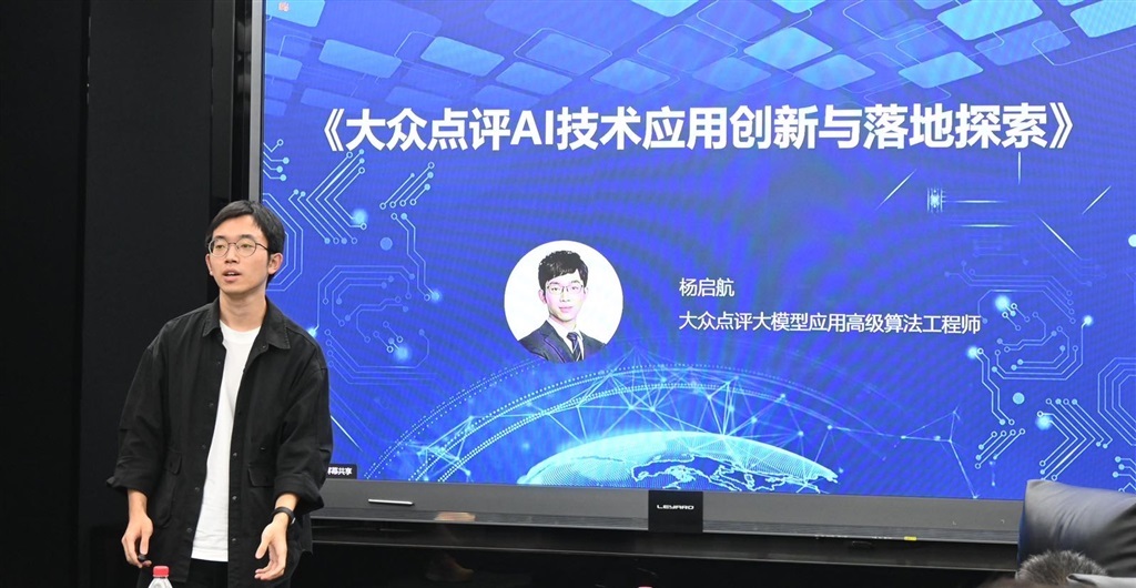 在案例分享环节,大众点评大模型应用高级算法工程师杨启航带来“大众点评AI技术应用创新与落地探索”主题分享。杨启航强调,人工智能正以史无前例的速度深刻变革着互联网行业的研发模式、业务运营以及用户体验。他通过介绍大众点评在智能研发、业务质控与产品创新等方面的策略,帮助与会者更进一步了解AI如何创造价值,进而推动平台实现高质量发展。