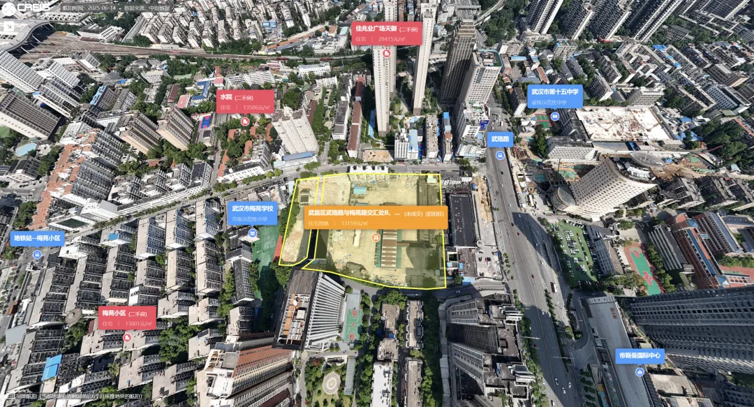 本次溢价成交的另一宗地块为位于武昌区武珞路与梅苑路交会处的傅家坡047号住宅地块。该地块吸引了保利、华润、绿城、厦门建发等7家企业参与竞拍,经过45轮竞价后,最终由建发国际集团(01908.HK)旗下的黄石悦发房地产有限公司以12.202亿元的总价竞得,溢价率为22.42%。