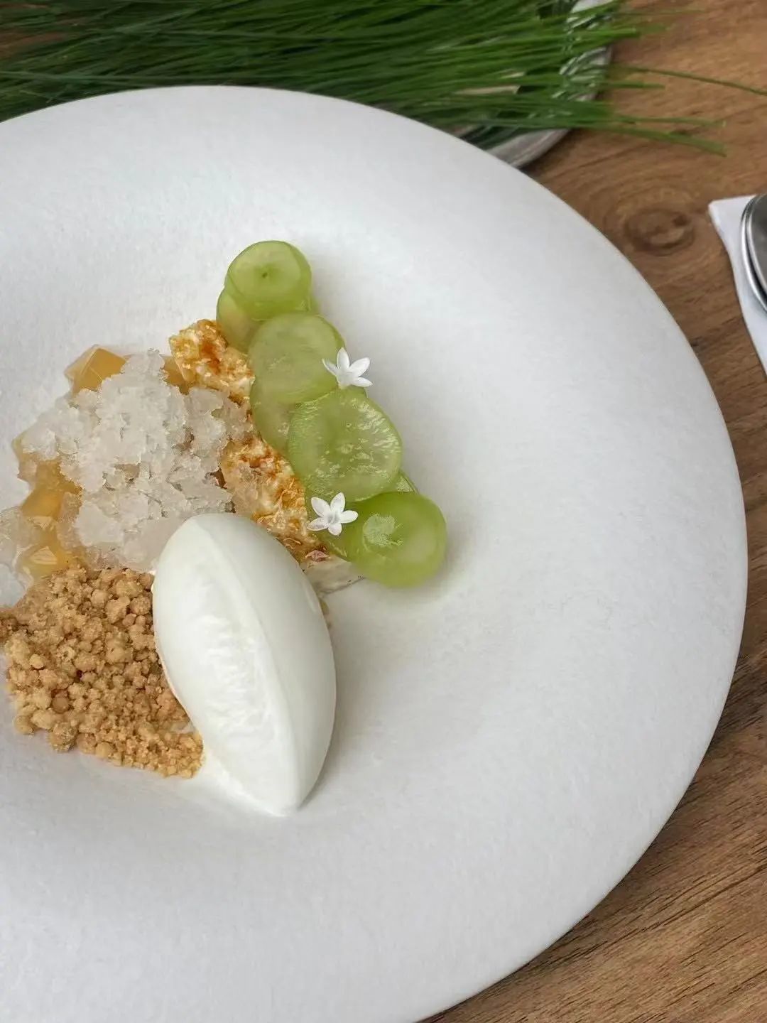 主理人裙裙在巴黎Ferrandi毕业后一直在西餐后厨做研发,履历中不乏米其林二星餐厅。在QUNQUN这间实验室里,烹饪手法被用于甜品制作,甜与咸乃至料理方式间的界限被打破,食材、技艺、风味变成自由流动的种子,生出意想不到的有趣灵魂。