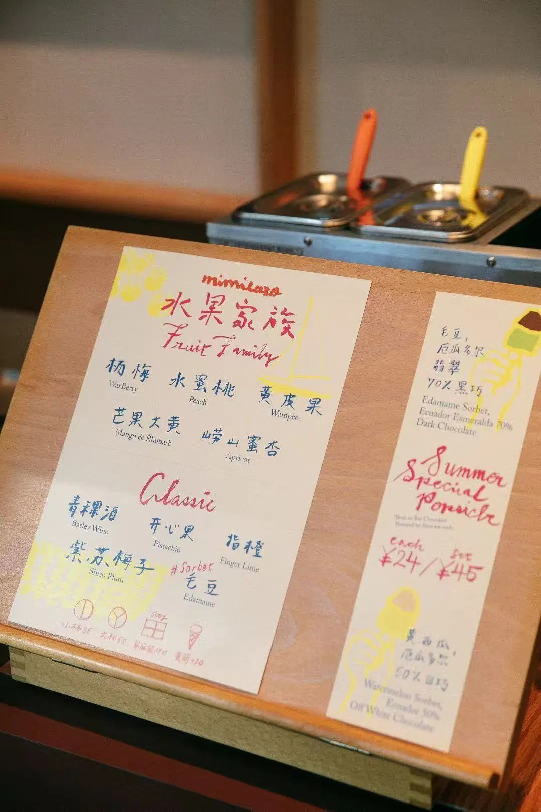 这里有根据季节变换上新的时令菜单,清明的毛尖山竹、大暑的桂七青芒、立秋的烟熏松子、小雪的草莓派对……充满探索欲的菜单背后是把四时风味尽揽入怀的野心;这里还有让人意想不到的创意口味,烤茄子、发酵番茄、玫瑰腐乳、金佛手黑佛手、烟熏辣椒巧克力……大胆猎奇的组合背后是对本土食材和风味的深度探索,以及将烹饪技法用于冰淇淋制作的游刃有余。