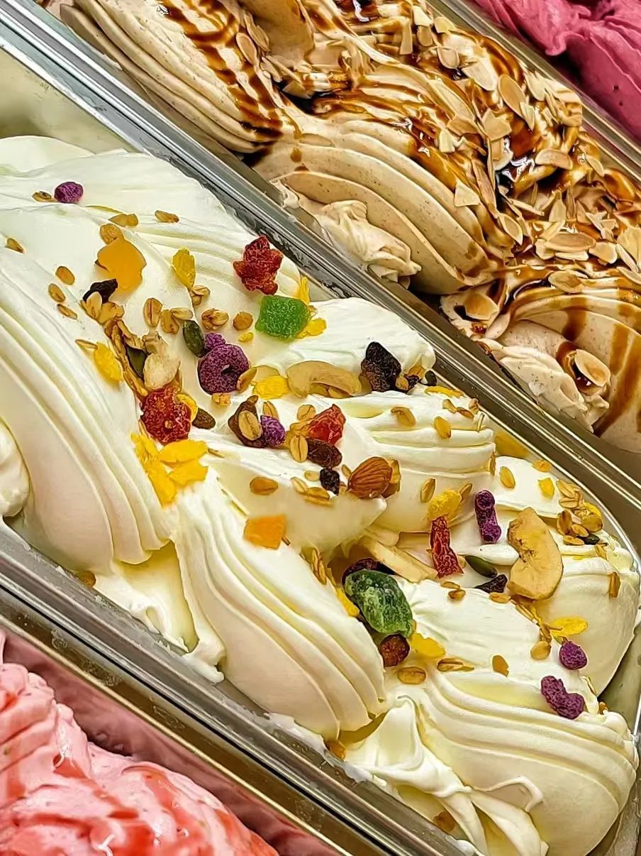 与常规的冰淇淋相比,Gelato口感更细腻,空气含量更低,更多使用鲜牛奶,故而脂肪含量也更低,搭配口味也很本土化,各种层出不穷的口味,可以把本地应季的食材都容纳其中,只有想不到,没有吃不到。