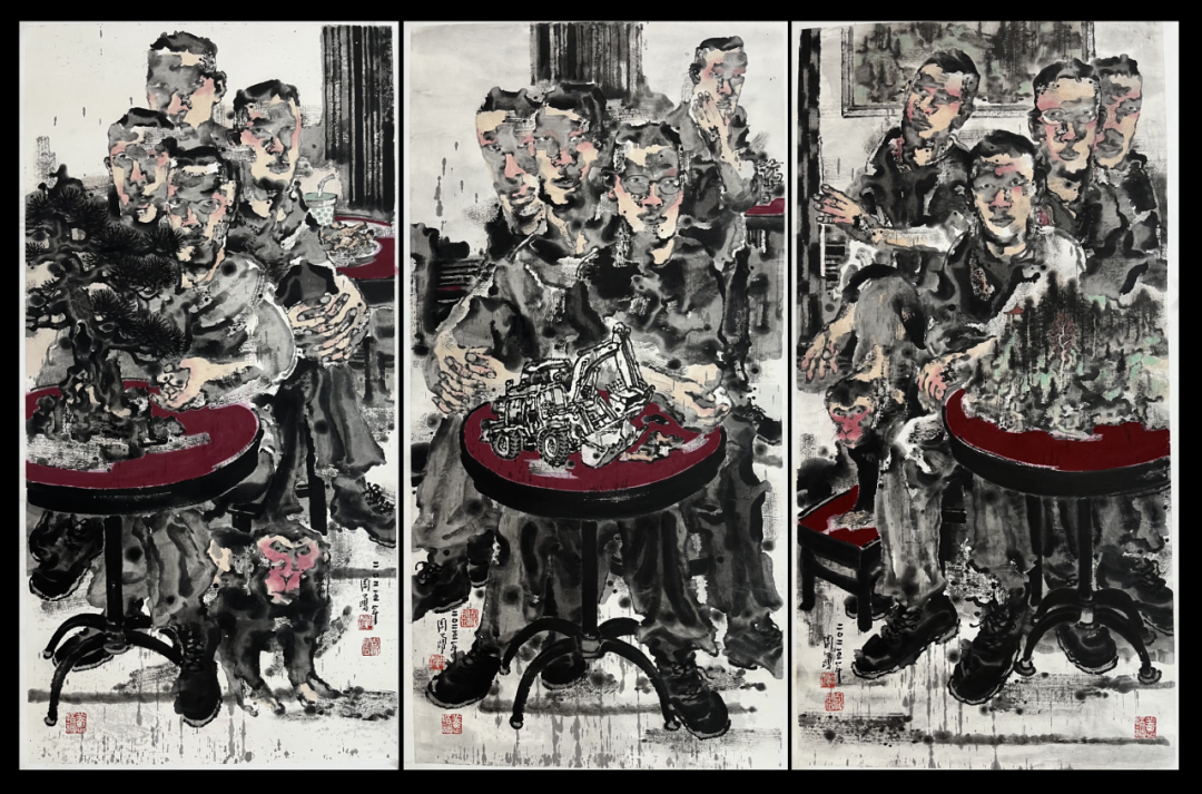 ▲周湧《圆桌》纸本水墨 138x69cmx3 2025