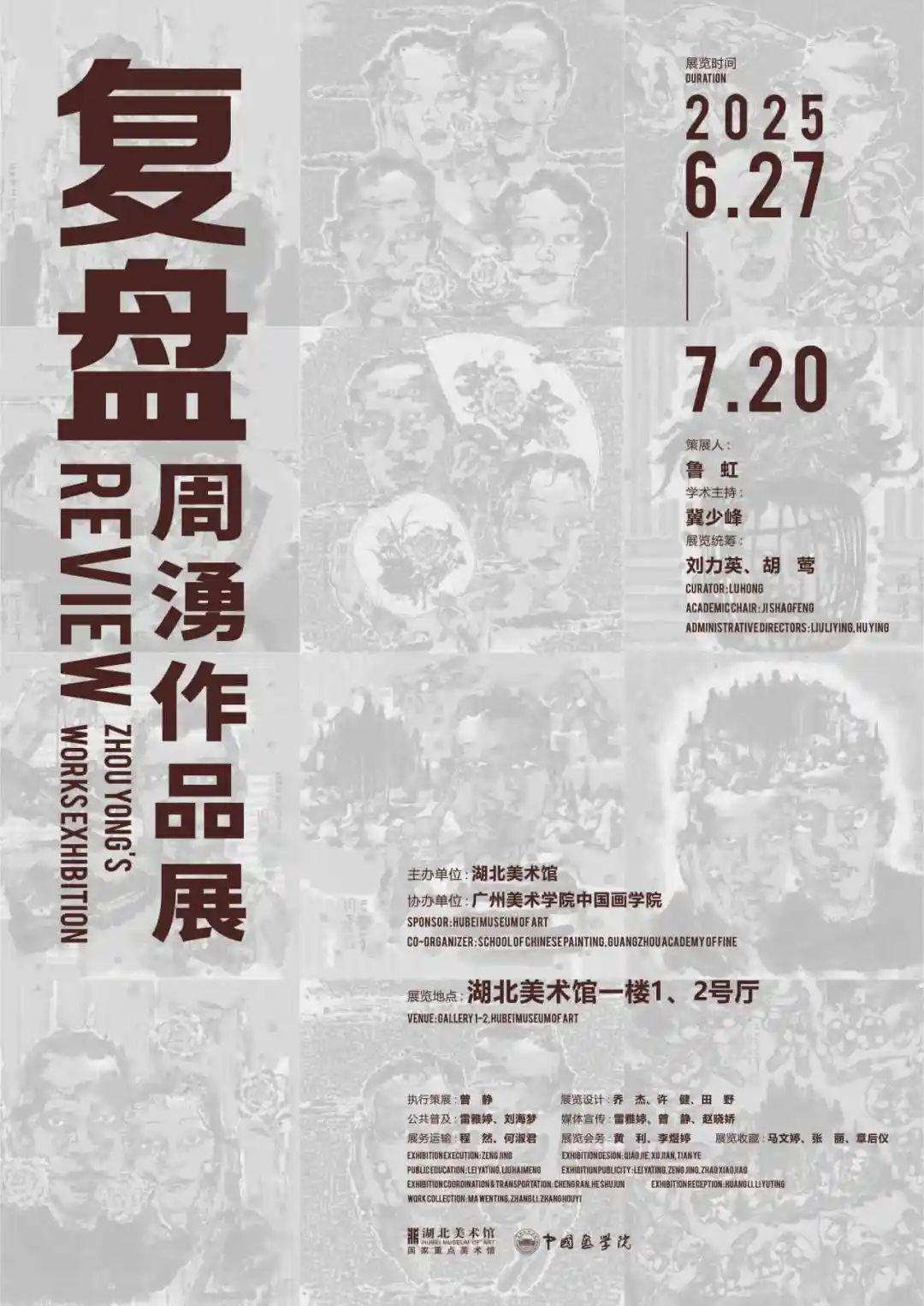 2025年6月27日,由湖北美术馆主办、广州美术学院中国画学院协办的“复盘——周湧作品展”在湖北美术馆正式开幕。湖北美术馆馆长冀少峰,合美术馆执行馆长鲁虹,华南师范大学教授、批评家、策展人皮道坚等嘉宾致辞,本次展览艺术家周湧致答谢辞,展览由中国雕塑学会顾问、湖北美术馆艺术总监傅中望宣布开幕。
