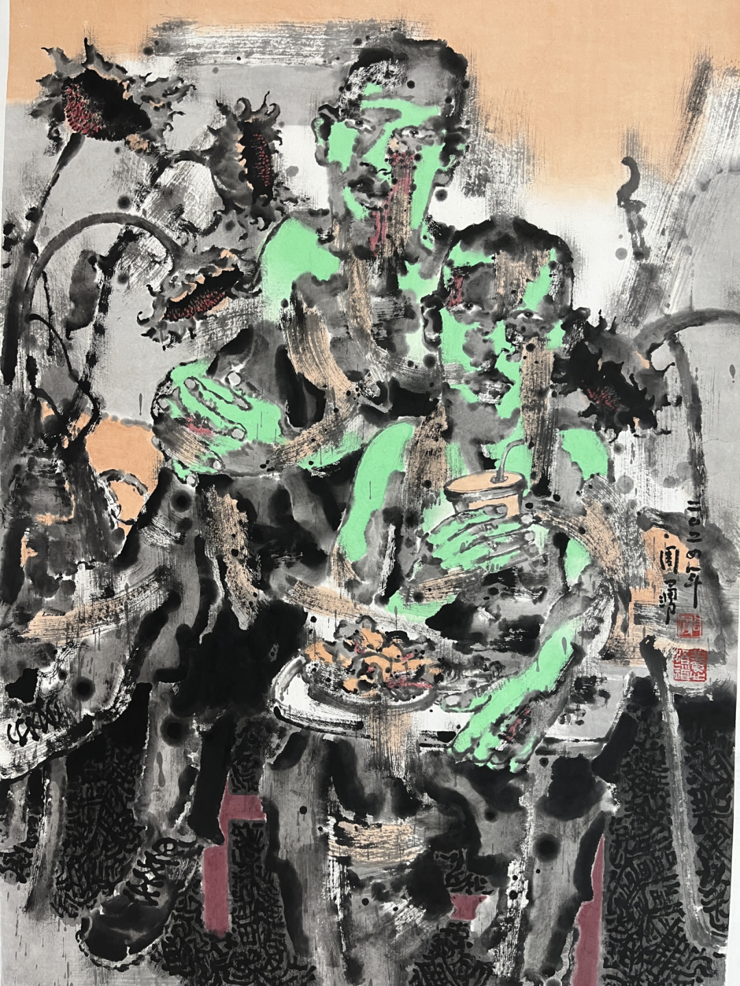 ▲周湧《绿色的人》纸本水墨 125 x88cm 2024