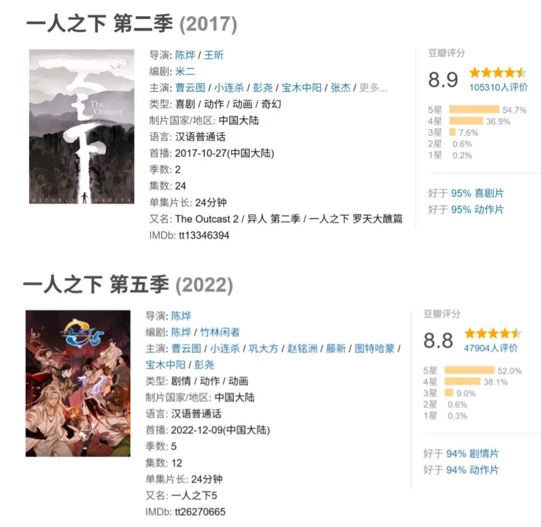 2016年《一人之下》开启“动画化”。从第一季到第五季,每季播放量皆突破10亿,更保持了神作口碑始终维持不坠。随着今年第六季的上线,想必将会掀起又一轮“异人集结”的风潮。
